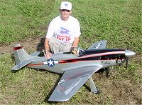 Merlin D. Gorowsky from St. Paul Minn. proudly displays his Top Flight P-51 Mustang constructed of