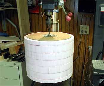 2" pink foam and glued together. Then it is then mounted in my drill press