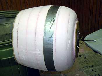 of the plug for the engine cowl. Seven 16" diameter circles are cut out of