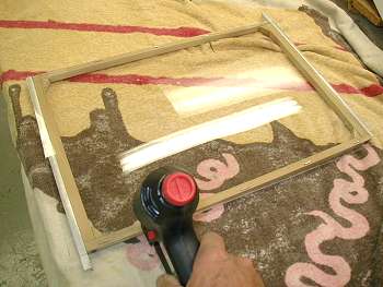| 040 P.E.T.G is fixed to a frame in preparation for vacuum