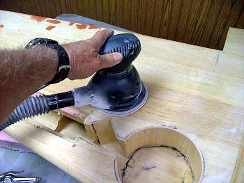 orbital sander with 100 grit paper. It is hooked up to my shop vacuum, so there