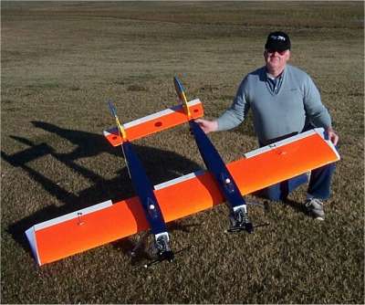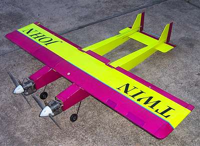 size made into a fun fly twin. Has two ST .45"s, 12x4 APC props, only