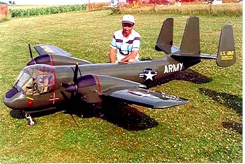 130" wingspan, powered by 2 G-62's, 73lbs, homemade