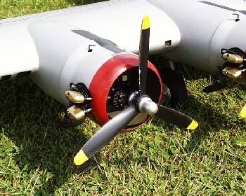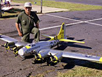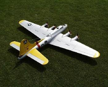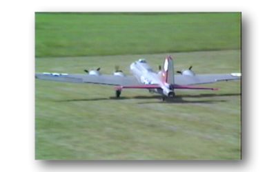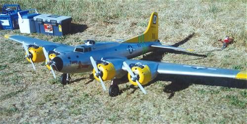 Mitch Epstein from Leominster, Mass displays his Don Smith plans built B-17. Four G-23s get it airborne quickly. Fully loaded with bomb bay, bomb drop, smoke, lights, one or two legged approaches. It weighs 49 pounds and only needs 1/2 the power for realistic flight.