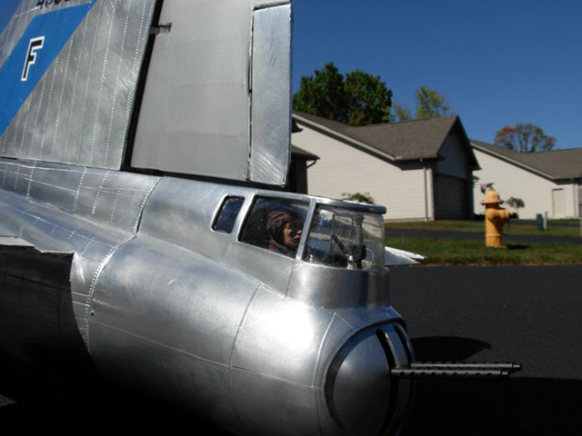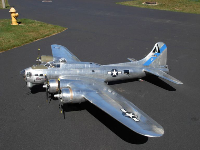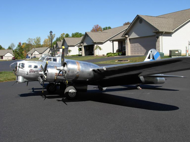 Matt Miller's B-17 is a big boy coming in at 100lbs and sporting a 18 foot wingspan. Four G-38's provide power and Matt says more would be nice. Matt is from Massillon Ohio.