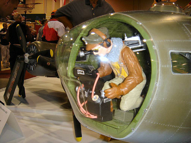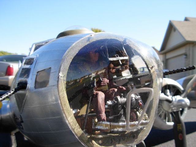 Dan Givney of Dallas, Texas built 'Miss Alice from Dallas' from American Eagle B-17G plans, With a 123 inch wing span, she's powered by 4 - Saito .72 four strokes with smoke systems and weights in at 49 pounds. Dan's one ups himself with his next B-17G project . Be looking for 'Milk Wagon' from the 447th Bomb Group at Bomber Field this September.