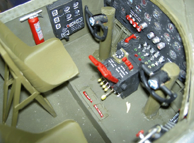 Dwayne Fosseen from Radcliff Iowa shows his American Eagle B-17. 40lbs, 10 foot wingspan, Century Jet retracts and Saito 91's for power. Dwayne used a Don Smith plans wing reduced to match the American Eagle fuselage with 2.5% washout. A video camera behind the pilots lets the ground crew watch the flight from the cockpit. |
