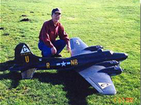 Frank Annett from Radcliffe,Iowa with his B-17, Yankee Lady, built from an original Westcraft kit. Frank spent 2 1/2 years producing this fine looking bomber. He is using Saito 91's on this 11 foot wingspaned bird and a JR 10x to control it. |