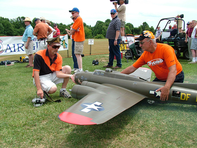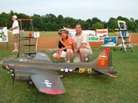 Frank Annett from Radcliffe,Iowa with his B-17, Yankee Lady, built from an original Westcraft kit. Frank spent 2 1/2 years producing this fine looking bomber. He is using Saito 91's on this 11 foot wingspaned bird and a JR 10x to control it.