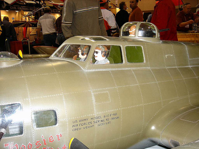 Dwayne Fosseen from Radcliffe, Iowa shows one great looking B-17. Built from a Westcraft kit this beauty weighs 50lbs and uses Saito .65 engines for super scale flight.