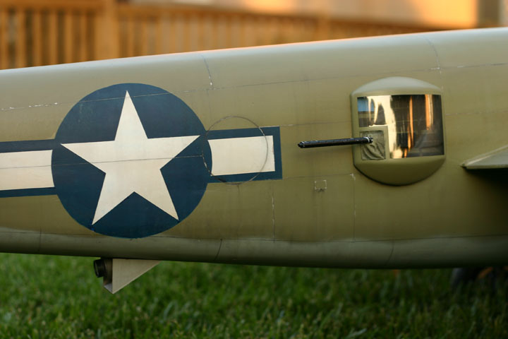 Randy's Ziroli plans B-25. 101" wingspan, 38lbs, converted 31cc Ryobi weedeater motors, Robart retracts, two receivers, Ram lights and machine gun effects. See the entire project, step by step at Randy's great B-25 project web site here. |