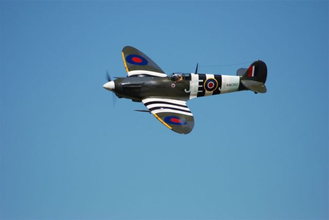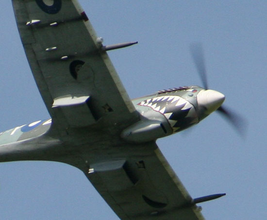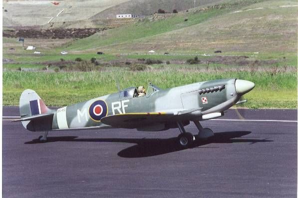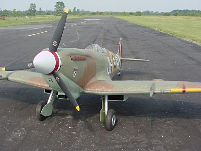 Jeff's MKIX Spitfire comes from a Canadian kit by Clark Ind. This battle of Britain fighter features 112" wingspan and comes in at 49lbs. It gets up to speed quickly with a 104 cc inline twin.Photo by Jim Patrick