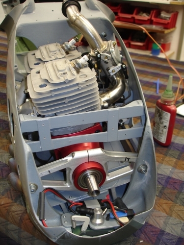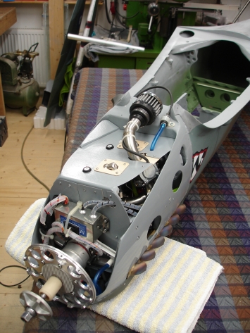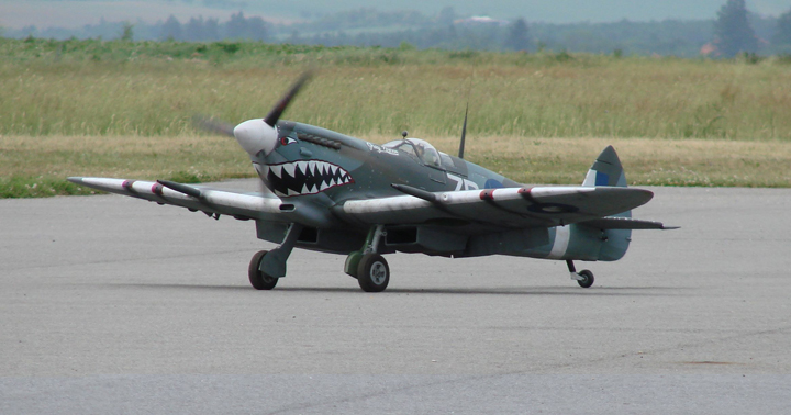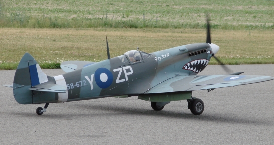 Detlef Kunkel's from Munich Germany with his fiber classic Spitfire (also a heavy one with 23 kilo, 124cc inline engine (custom made for this one machine, cooling via belt driven cooling fan), scale retracts, individual brakes (for true steering), scale true exhausts (working!) and so on.