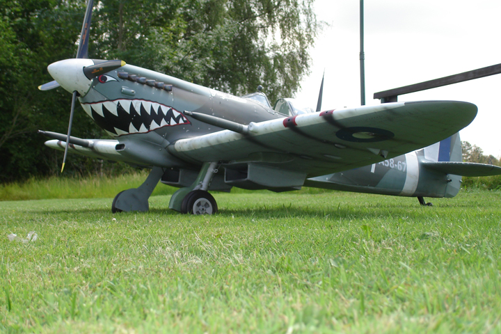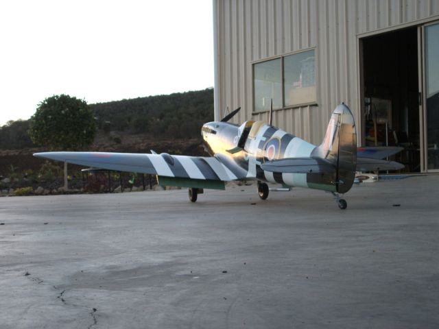 Jean-Philippe's from Bordeaux, France with his Spitfire Mk IX from an aviation Design kit. This Spitfire is 100% scale. Wingspan : 78 inches. Weight : 19,5 lbs. The engine is a Laser 180.