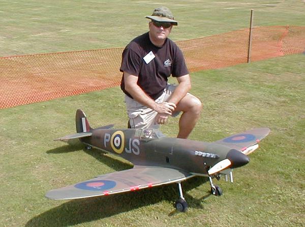 Roger Soukup from Owatonna, Minn looks very happy with his MK 9 Spitfire. Roger built this beauty from a Pica kit using Balsa and glass then put on one very, very nice paintjob. A Super Tiger 3000 fills the nose and an 88" wingspan flies it's 18lbs with ease. Be sure see the larger picture of this one.