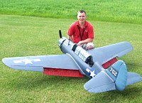 Doug Imes from Geendale Wisconsin poses with his Grumman Wildcat. Doug uses