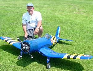 Eric Ramsey from Lake Mills Wisconsin and his Mick Reeves Spitfire. This gorgeous model flew at 15lbs with a Saito 150 four cycle. Eric knows Spitfires very well as he was a Cadet in the R.A.F. in WWII.