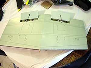 to the center sections using wooden dowels for alignment. The outer wing panels
