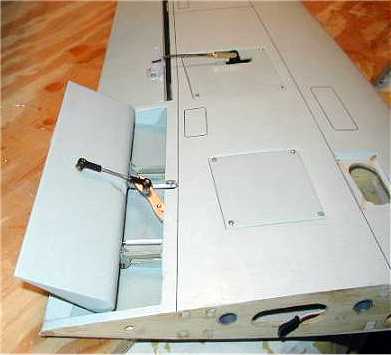 using wood screws. The extra push rod shown is for the wing fowler flaps. This