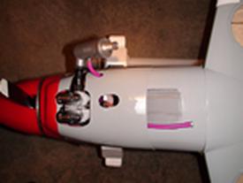 Although the cowl was the second item I like least about the kit it was more for the way it fit than the quality. The quality was very good and the color match was as close to the covering color as you could get. My only real dislike is how it fits to the fuselage, since it slides over the fuselage it does not fit flush it and has small gaps all the way around. However, installing the cowl is almost as easy as it could be, the templates made marking the head cutouts a snap. First, with the engine still mount I cut out the template and taped it to another piece of paper. I then laid the template over the engine heads and taped the paper to the fuselage. I removed the engine and having first marked the proper location of the cowl on the fuselage I slid the cowl on and used the template to mark where the cutout should be. I took the cowl off and used a Dremel tool to make the cutouts. I reinstalled the engine to check the fit and sure enough it was spot on. The manual instructs were to drill holes in the cowl to match up with wood blocks in the fuselage and again it was a perfect match. This is where the detail in the manual is really a plus and the engineering of the kit really stands out. The muffler and needle value cutouts were then cut in to the cowl to finish the installation. Instead of adding a fuel value as the manual describes I opted for a fill/drain line. So when assembling the tank I added a second clunk and have the line hanging out the cowl.