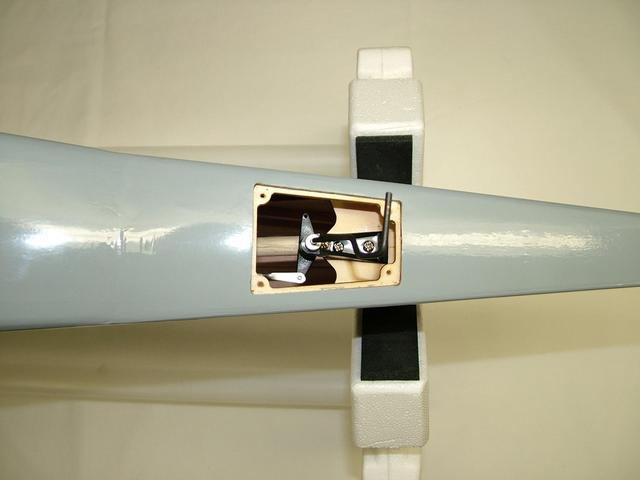 Attaching the control horns was made much easier by the fact that the linkages were already cut to length requiring only minor adjustment once connected to the servos. There is a difference in the length so take note the longer linkages are for the ailerons and the shorter ones for the flaps. The recommend throws for the ailerons are 7/16" up and down and the flaps are 1-1/2" down max. |