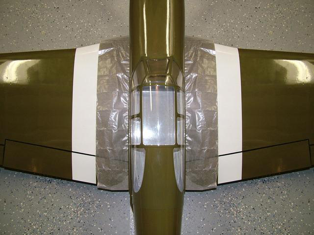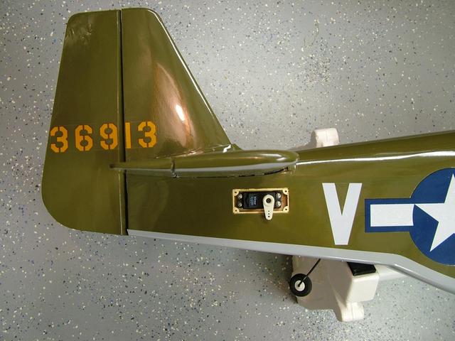 The manual lists 7 different C/G points ranging from 27% of MAC (mean aerodynamic cord) to 33% of MAC. I used 30% of MAC which made the balance point 5.4" from the LE. With this balance point the plane was a little tail heavy so l located the JR 6V 2700mAh battery at the rear of the radio compartment. Doing this required no additional weight to get the plane to balance. Its important to note that the balance point is as close to the fuselage as you can get. The Mustang wing has a sharper taper near the root than does the rest of the wing. Using the measurements provided in the manual any where else on the wing will lead to an improperly balanced airplane.