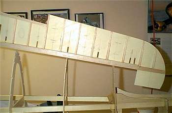 the spars with 1/16 balsa for rigidity. The trailing edge was also capped