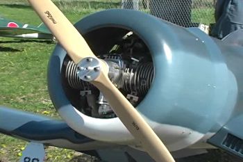 Husqvarna 240 twin for power, Menz 32-12 prop, Sierra retracts, cowl by Bob Sealy,